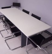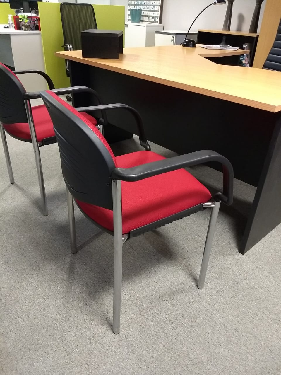 Extensa línea de escritorios, gabinetes, y sillas para la oficina.